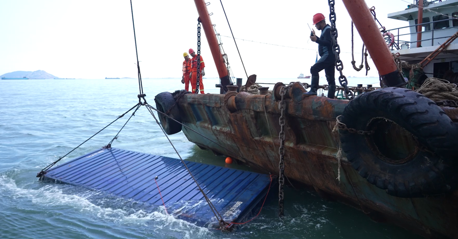 演练首次综合应用“新一代集装箱应急示位标”与“抛投式标识浮标”。集装箱落水后,示位标自动触发报警,实时回传位置信息;救援船舶同步抛投专用浮标,即便集装箱沉没,浮标仍可漂浮于水面标记位置,形成“双重定位保障”。同时,演练参照历史事故数据,模拟不同载货状态下集装箱的漂移轨迹,为建立“集装箱落水预测模型”积累了第一手科学数据。