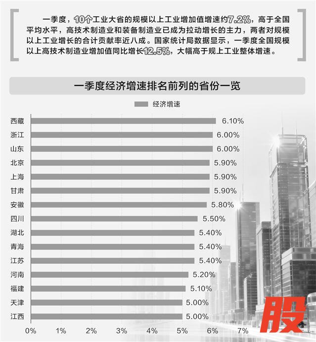 截至4月25日,全国31个省份一季度地区生产总值(GDP)数据悉数出炉。据证券时报记者统计,一季度,共有15个省份经济增速在全国整体水平(5.0%)及以上,其中,经济大省占了10个。江西、天津、甘肃、青海、西藏等省份增速也均在5.0%或以上。受访专家认为,一季度全国经济运行呈现“大省领跑、多点支撑”的良好格局,为全国经济稳定增长提供坚实支撑,而以高技术制造业为代表的新质生产力拉动经济增长的动能加速释放,成为多地核心增长引擎。