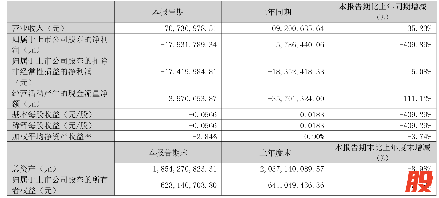 中证智能财讯大烨智能(300670)4月25日披露2025年第一季度报告。公司实现营业总收入7073.1万元,同比下降35.23%;归母净利润亏损1793.18万元,上年同期盈利578.64万元;扣非净利润亏损1742万元,上年同期亏损1835.24万元;经营活动产生的现金流量净额为397.07万元,上年同期为-3570.13万元;报告期内,大烨智能基本每股收益为-0.0566元,加权平均净资产收益率为-2.84%。