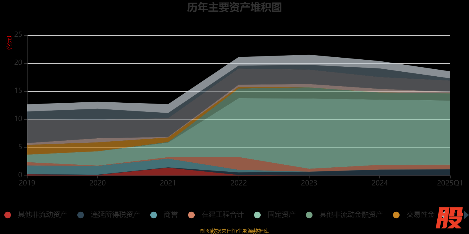 资产重大变化方面,截至2025年一季度末,公司货币资金较上年末减少73.64%,占公司总资产比重下降5.33个百分点;固定资产较上年末减少1.62%,占公司总资产比重上升4.6个百分点;其他应收款(含利息和股利)较上年末减少61.11%,占公司总资产比重下降1.8个百分点;递延所得税资产较上年末增加3.87%,占公司总资产比重上升0.73个百分点。